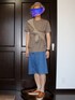 ベージュ系×デニムでまとめたたすき掛けコーデ