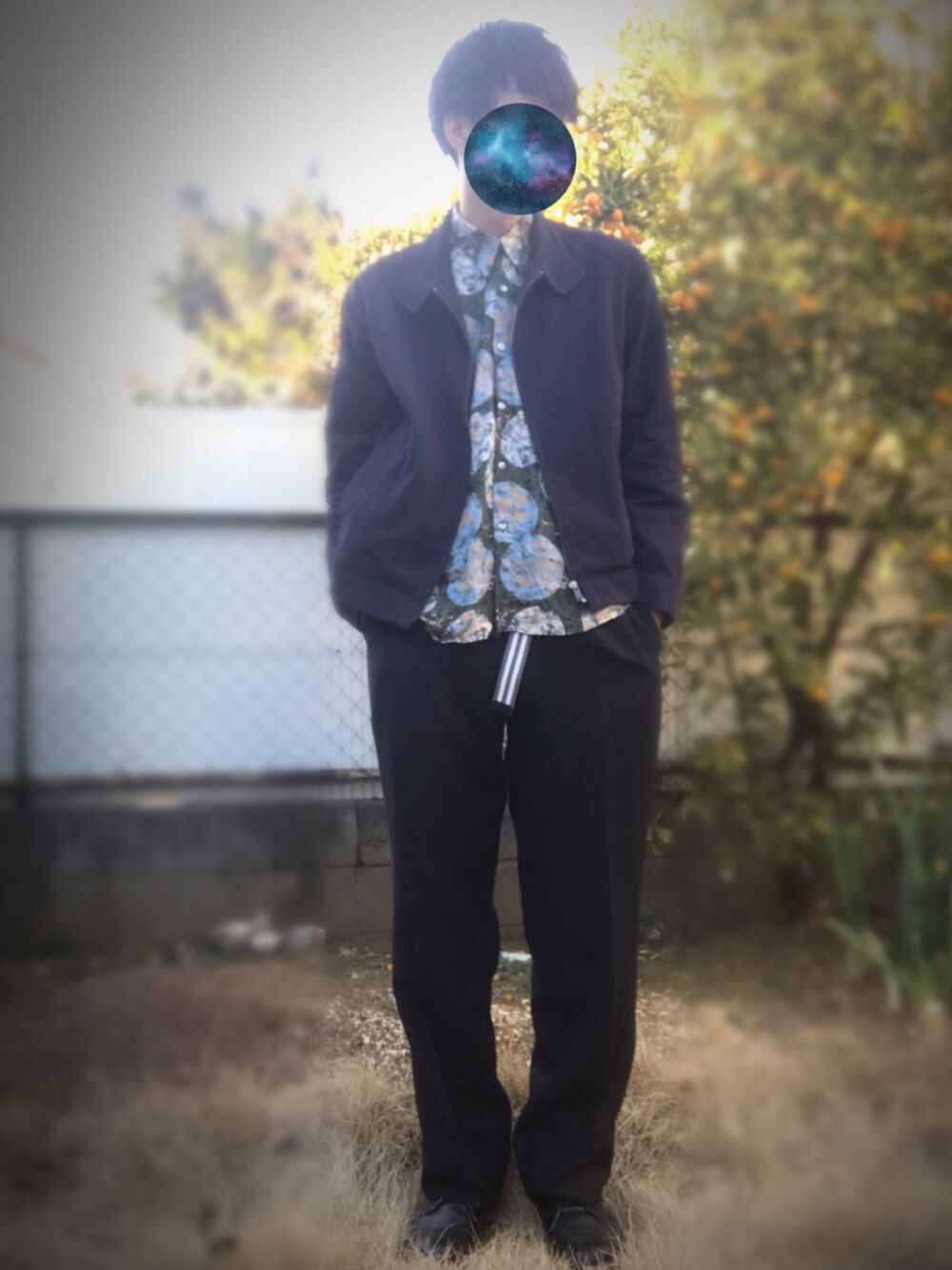 こんばんは🌚 今日はポカポカしてたので少し薄着のコーデ ワイドパンツと総柄シャツの相性がとても良い✨ ラコステのアウター丈感がとても気に入ってます
