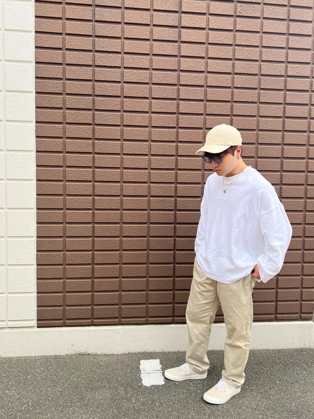 こんばんみ☺️ 今日は白とベージュの組み合わせでシンプルな感じにしてみました🥰 おにゅうのバンズの靴も履けて幸せです🥰