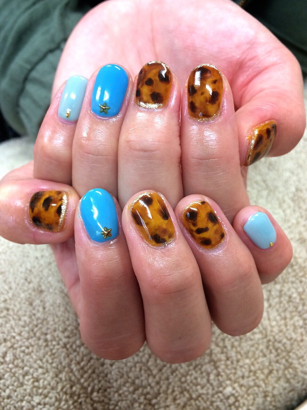 ヒョウ柄べっ甲ネイル💙