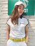 ⛳️adabat ホワイトをメインカラーに、ベルトの黄色をアクセントにした夏にオススメのコーディネートです。スカートも透けにくい素材なので、安心して着用できます♪
