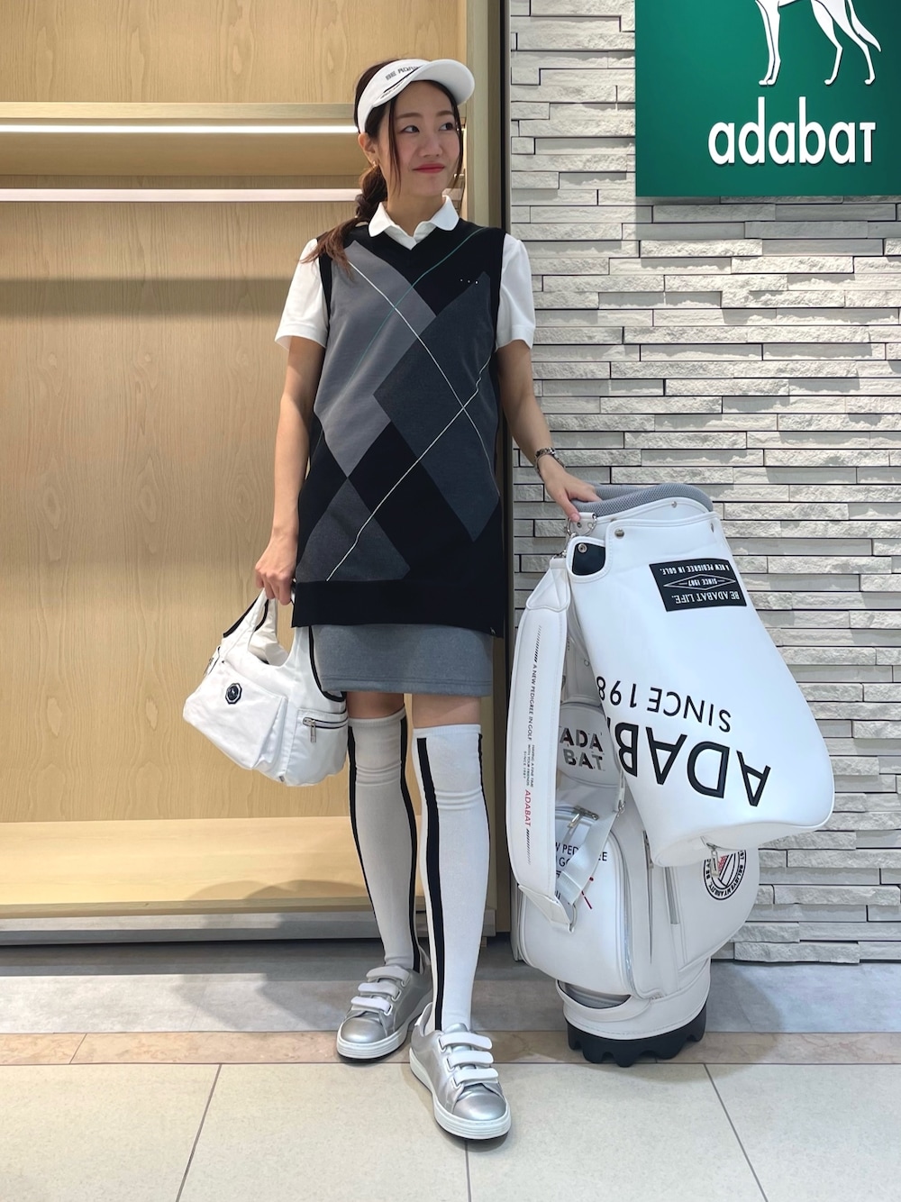 ご覧いただき、ありがとうございます♡ 【アーガイルニットベスト】 38(M)サイズ/ブラック着用 身長160cmの私が着用で、お尻がすっぽり隠れるぐらいの着丈があるロングベストです。サイドに深めのスリットが入っており動きやすく、パンツにもスカートにも相性◯。デザイン性がありながらも、落ち着いたカラーと定番のアーガイル柄で、意外とどんなものとも合わせていただけます。いつものコーディネートにプラスワンしてみてはいかがですか? 【フリルデザイン半袖ポロシャツ】 40(L)サイズ/ホワイト着用 前立て部分にフリルを施した女性らしいエレガントなポロシャツです。パフスリーブでふんわり柔らかい印象で、ゴルフ以外でもお役に立つこと間違いなしです! 【台形スカート】 38(M)サイズ/グレー着用 ストレッチ性◎、そしてウエストゴムの台形スカートです。着脱も楽ちんで穿き心地◎なアイテムです。ベーシックなデザインなので、1枚持っておくと色んなものと合わせてコーディネートができる優れ物です!