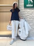ご覧いただき、ありがとうございます。 【フレンチスリーブポロシャツ】 38(M)サイズ/ネイビー着用 前身頃と後ろ身頃を異素材で組み合わせたポロシャツです。後ろにタックを施し、ゆったりふわっと着用できます♪フレンチスリーブで女性らしさ、細見え効果も◎です。 【クロップドパンツ】 38(M)サイズ/ホワイト着用 すっきり見えするクロップド丈のストレッチパンツです。とにかくストレッチ性◎で、一度履くとやみつきになること間違いなし…♡ゴルフだけでなく、タウンユースにもオススメです♪