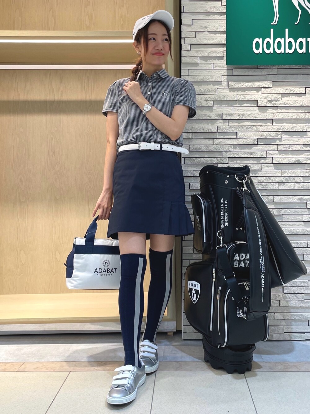 H(adabat)のポロシャツ「◆千鳥デザイン パフスリーブ 半そでポロシャツ」を使ったコーディネート