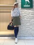 H(adabat)のスカート「◆ウエストゴム サイドプリーツデザイン 台形スカート」を使ったコーディネート