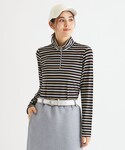 H(adabat)のTシャツ/カットソー「◆【吸湿発熱】ボーダーデザイン 長袖ハーフジッププルオーバー」を使ったコーディネート