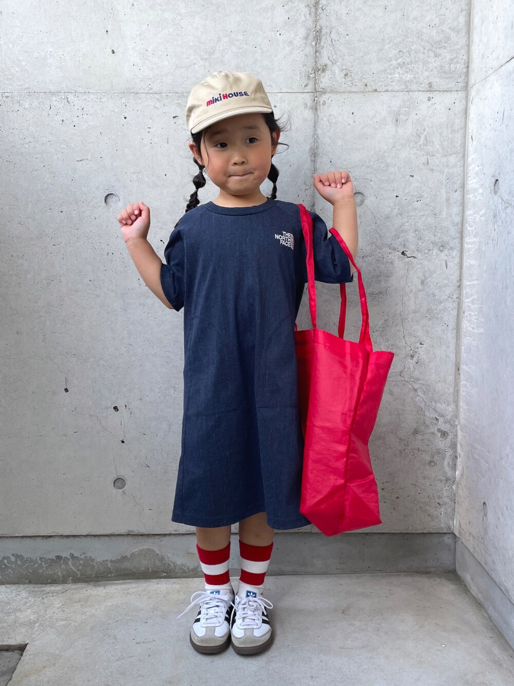 インディゴのワンピースgetしました👗 ベージュのキャップに合わせたくて♡ 想像以上にマッチしすぎて最&高🤝🔥 実はエコバッグもmiki house❤️ ご覧頂きありがとうございました🦭