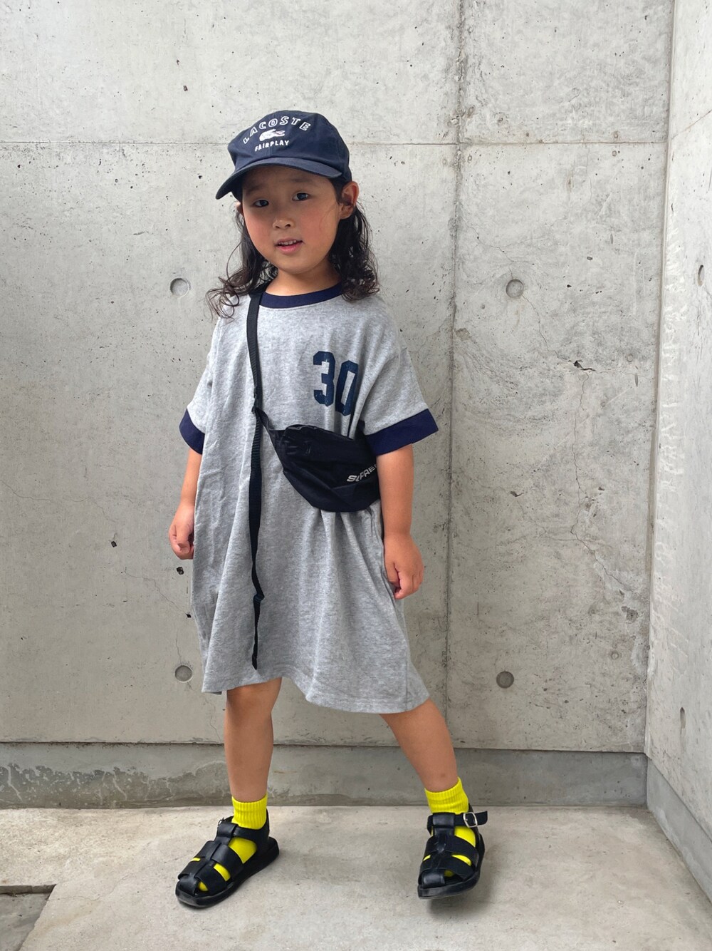 オーバーシルエットのワンピースに ウエストポーチ斜めがけして スタイルUP 𓂃 𓈒𓏸 ナンバーとリブラインに合わせてネイビーcap 🧢ˎ˗ このソックスのカラー絶妙🍋🟩🍋🟩🍋🟩 グレー×ネイビー×ブラックとの相性抜群 ⸝⋆ ご覧頂きありがとうございました🦭
