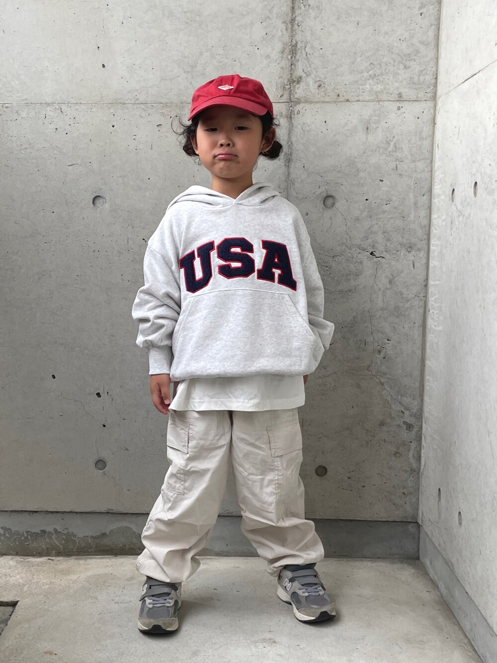 ioooのスウェット「USAロゴフーディ 134382」を使ったコーディネート