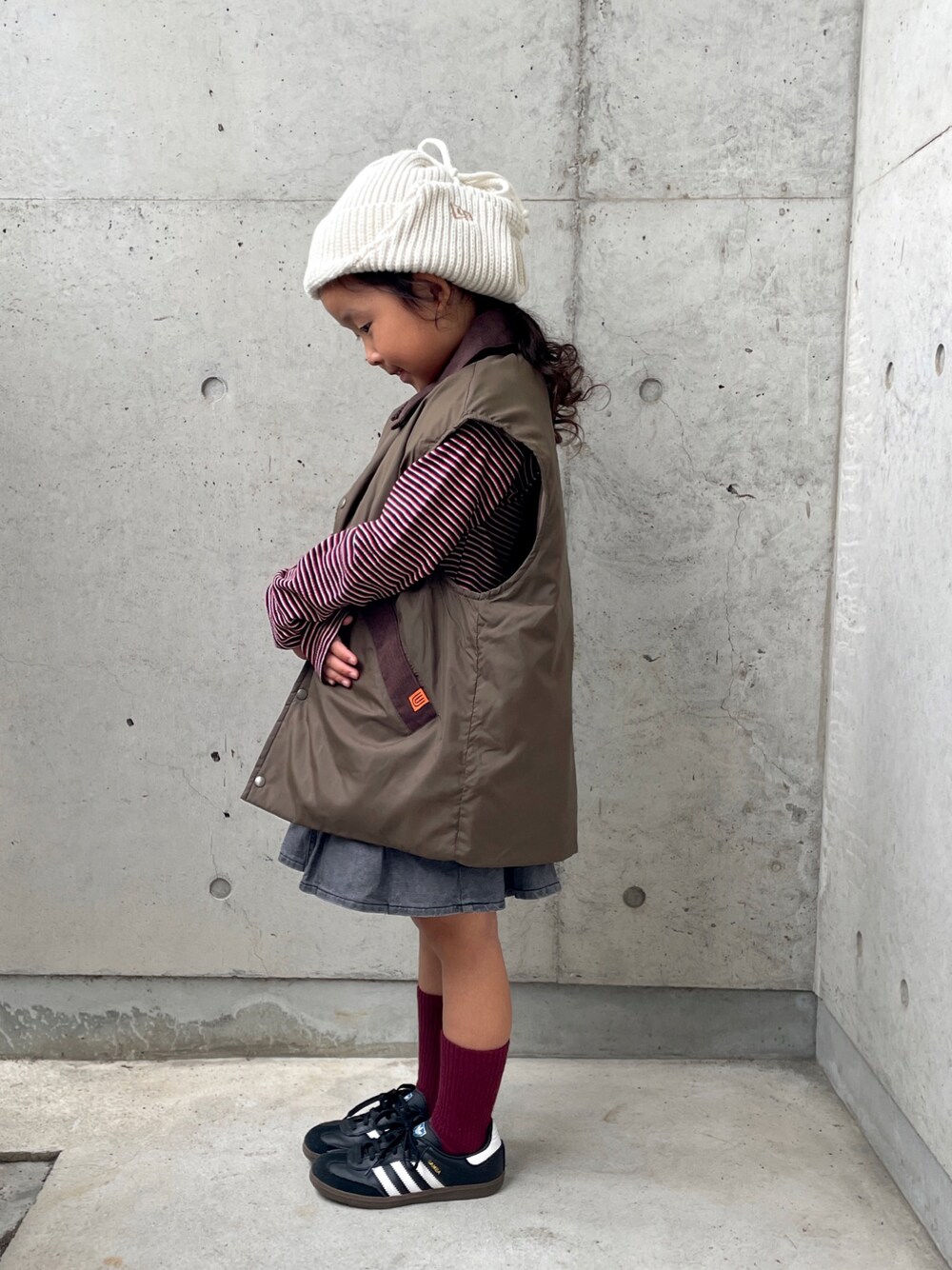 素敵なオシャカワ𝕜𝕚𝕕𝕤ちゃん達の着こなしを 拝見していたので🫶ˊ˗ ベストとブルゾン凄く凄〰︎く悩んで ブルゾン持っていたのでベストに決めましたꉂ 🤣 ですがブルゾンも破壊的な可愛いさでした🥲.ᐟ.ᐟ オータムカラーがたまらないᡣ𐭩ᡣ𐭩ᡣ𐭩⸒⸒ 暗くなりすぎないように頭にアイボリー🐻❄️ 秋物が可愛すぎて物欲が爆発してまーす🚨 ご覧頂きありがとうございました🦭