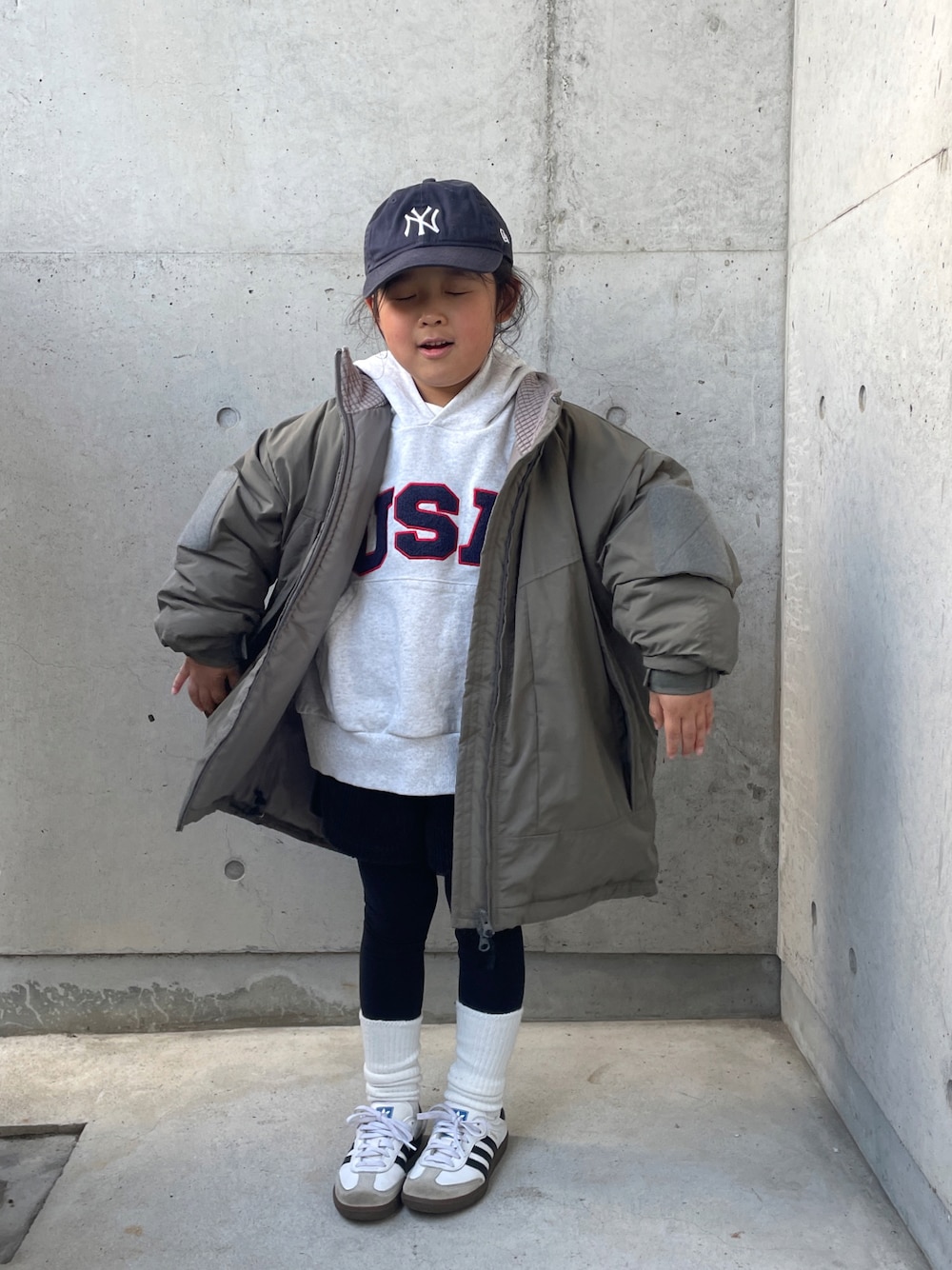 フードを外したモンスターパーカーに USAパーカー🇺🇸 ユニクロのヒートテックタイツに ルーズソックスで海外キッズ風👱🏻♀️♩ 母もモンスターパーカー欲高まるꉂ 🤣 ご覧頂きありがとうございました🦭