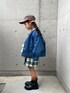 ioooのデニムジャケット「TJ ノーカラー デニム ジャケット EMB / キッズ 100cm-130cm - ストレッチ -」を使ったコーディネート