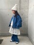 ioooのデニムジャケット「TJ ノーカラー デニム ジャケット EMB / キッズ 100cm-130cm - ストレッチ -」を使ったコーディネート