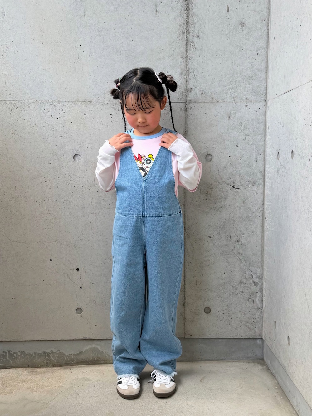 @greenlabelrelaxing_kidsで 購入したパワーパフガールズ🔥 まだ商品出てこなかった🥲 三色あったけどピンクに🏹💗 可愛すぎて娘もウキウキ サロペット合わせ正解🫰 春っぽいライトブルーにしたよ🫰 ご覧頂きありがとうございました🦭