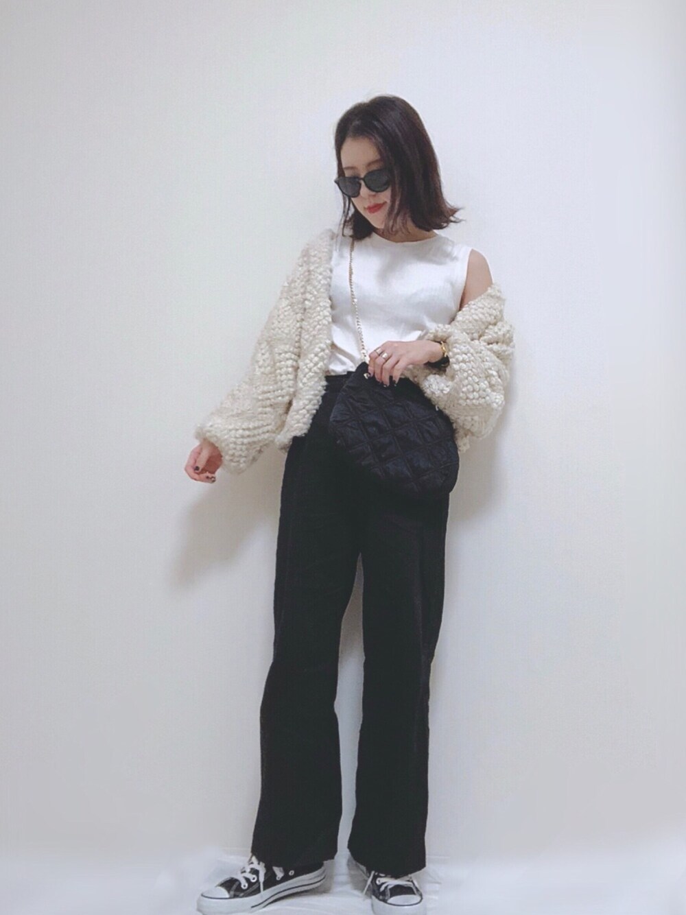 モノトーン! もこもこアウターの季節だと思いきや なんだか最近暑いですね( ;∀;)