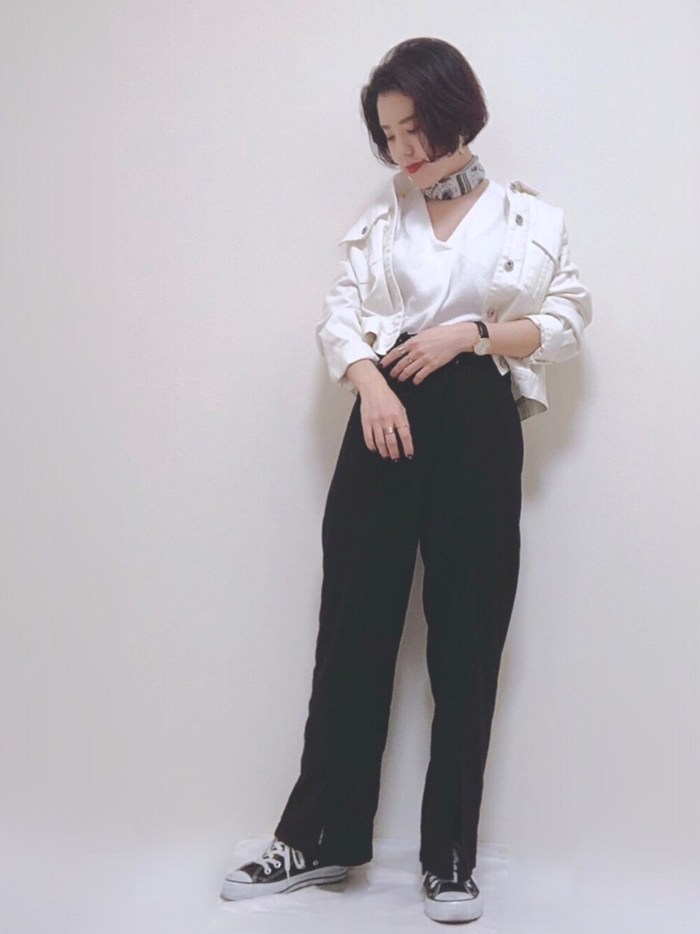 やはりモノトーン落ち着きます。 ペイズリーのバンダナ巻き😙💓