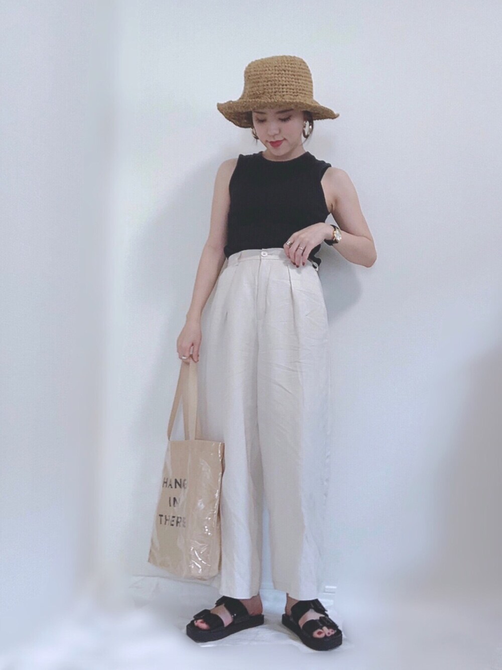 HITOMIのハット「ニットりぼん ペーパーハット」を使ったコーディネート