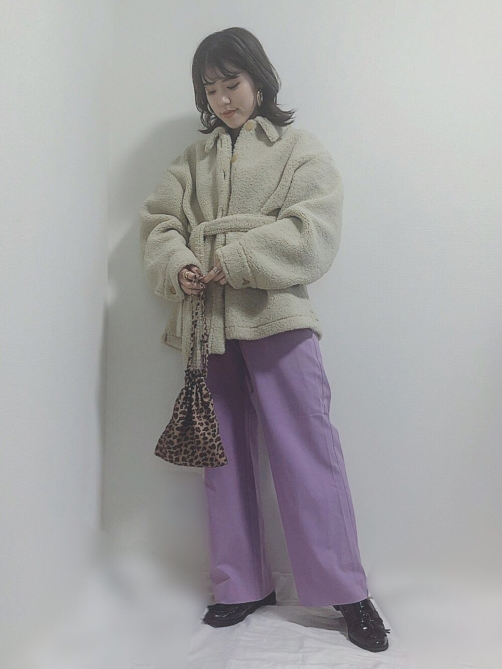 HITOMIのその他アウター「ボアフリースショートコート」を使ったコーディネート