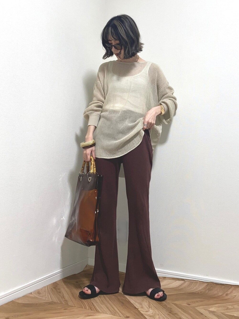 HITOMIのトートバッグ「バンブークリアトートバッグ(PVCバッグ/インバッグ付き)(マルシェバッグ)」を使ったコーディネート