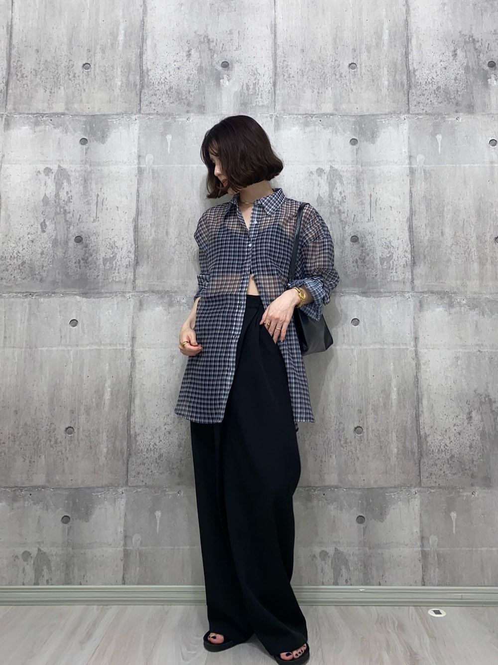 チェックのシアーシャツ◎ 適度な肌見せアイテムにちょうど良い🤍 シワになりにくいのも🫶◎ ZOZOTOWNにてクーポンでてます🎫