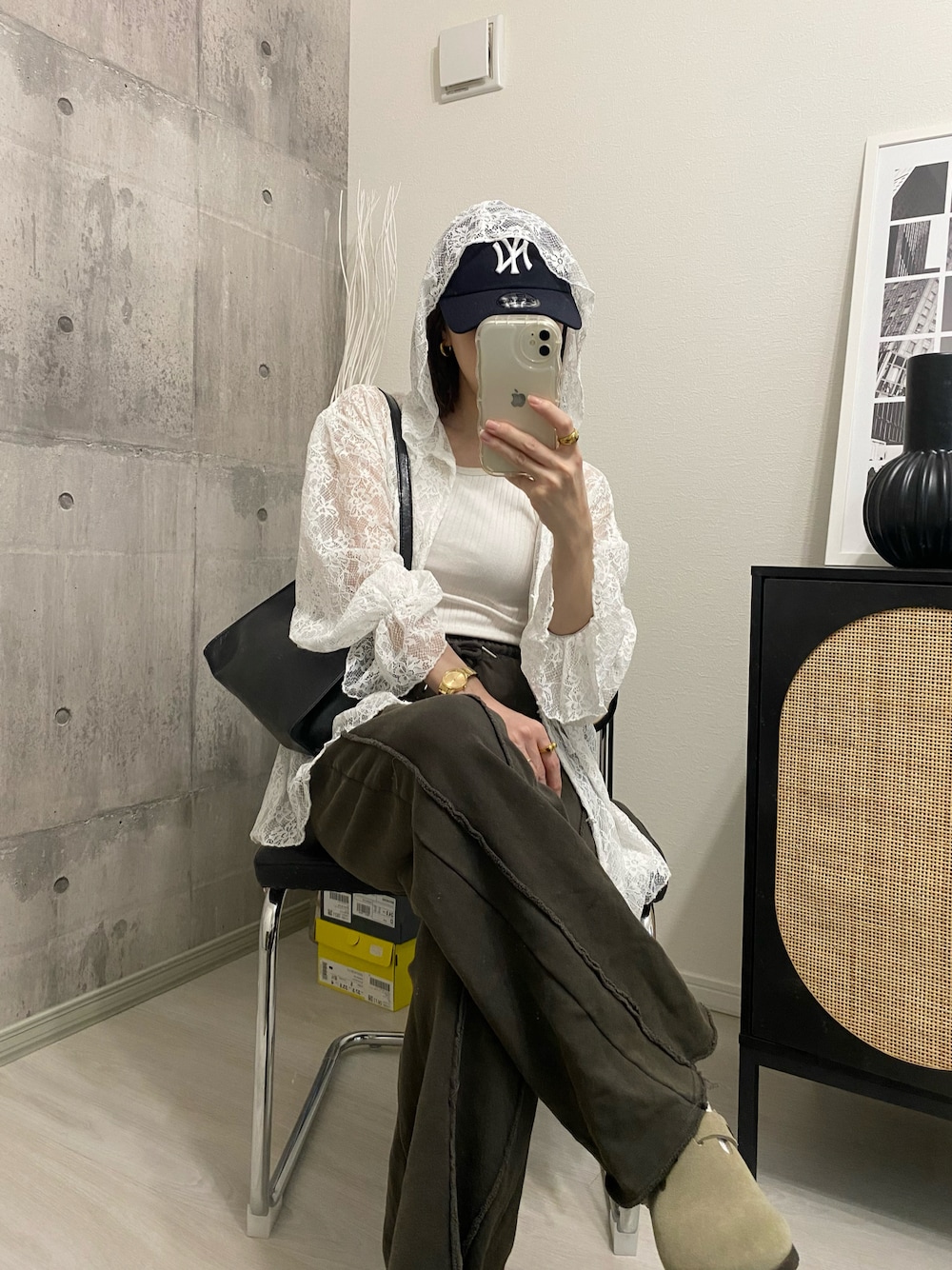 レースフード付カーディガン🤍 カジュアルにもモードにも合わせられる 万能カーディガン👏 ZOZOにてクーポンでてます🎫