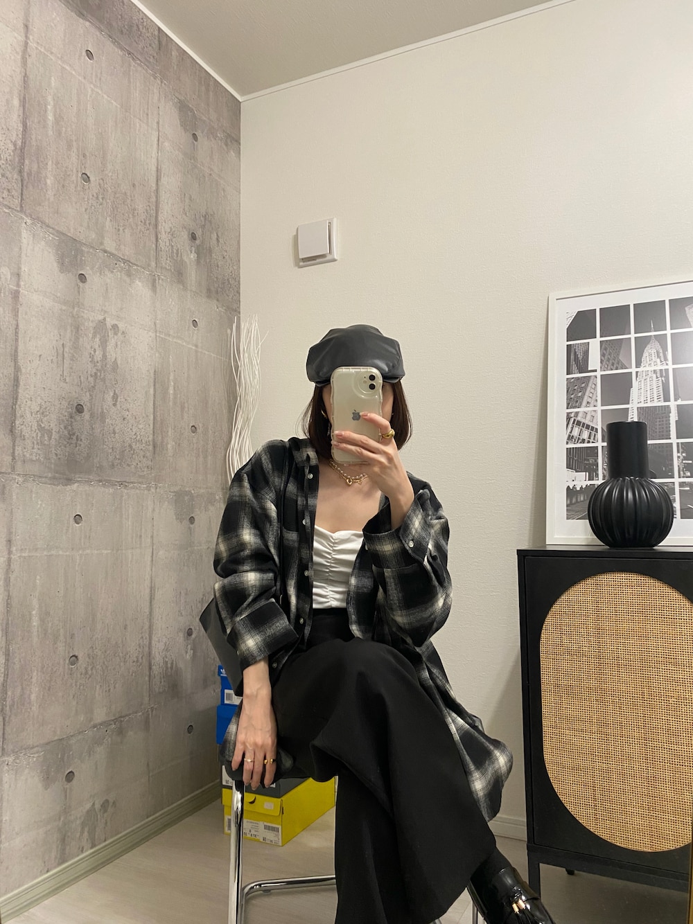 フード付きチェックシャツ✔️ そろそろ秋服の準備を🤍 BIGシルエットだから色々合わせやすい◎ 着心地もとても良いよ〜 ZOZOTOWNにてクーポン出ててます🎫