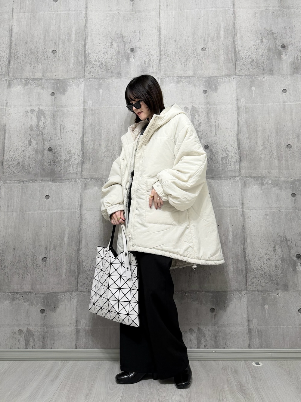 軽くて暖かいアウター🤍 このBIGシルエットが可愛いんだなあ◎ アイボリーのLONG着用しています☝️🤍 ZOZOにてクーポン発行中です🎫