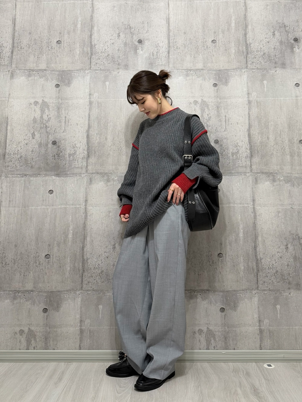 HITOMIのニット/セーター「畦編配色レイヤードプルオーバー」を使ったコーディネート