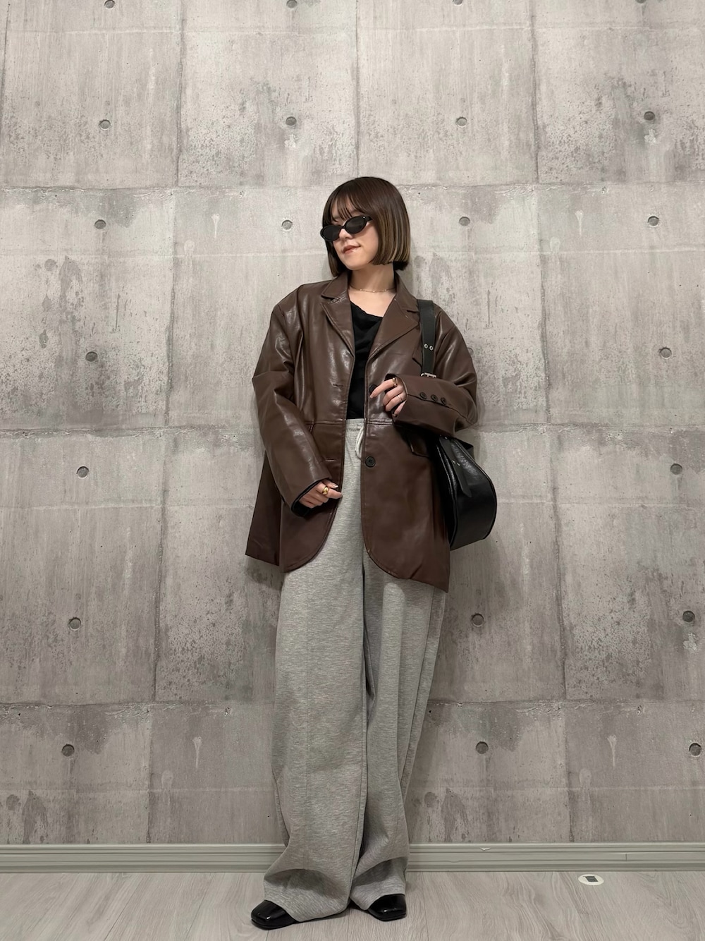 レザー×スウェットパンツ好きな組み合わせ🤝🤍 見て頂きありがとうございます( ◠‿◠ )💫