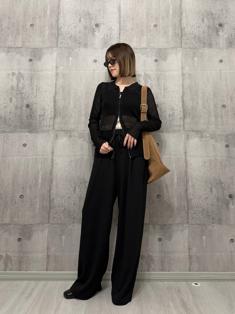 HITOMIのカーディガン/ボレロ「【web限定アイテム】ラメシアー衿付きダブルジップカーディガン」を使ったコーディネート