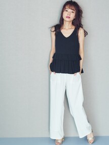 HITOMIのTシャツ/カットソー「・Vネック袖フリルプルオーバー」を使ったコーディネート