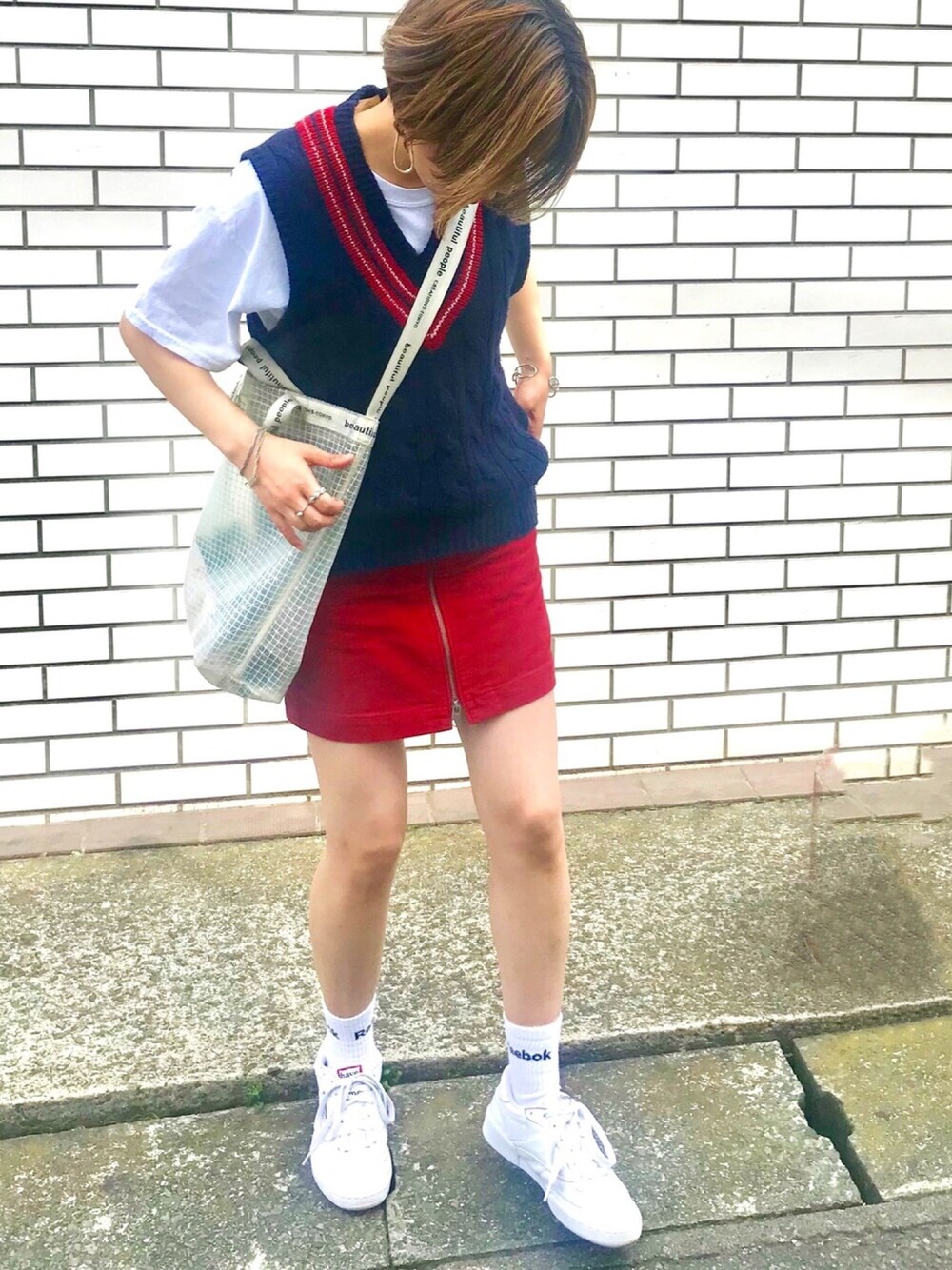 可愛いベストを手に入れた! かなり重宝しそう👆 スカートはUNIQLOUの新作💜 私はジャケットとセットアップで買いました〜