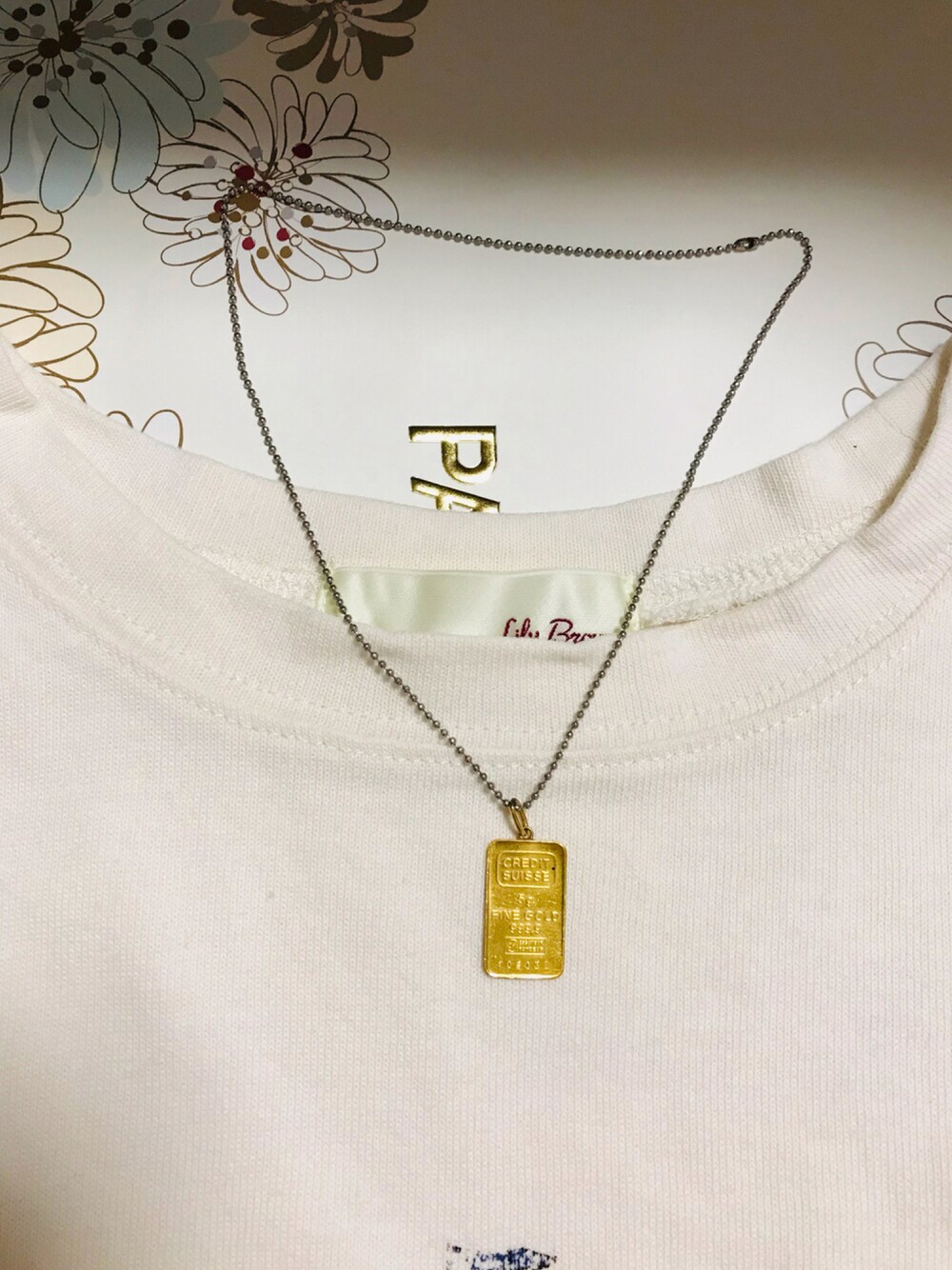 相互しませんのネックレス「ゴールドコインバー 5g ペンダントトップ 38cm」を使ったコーディネート