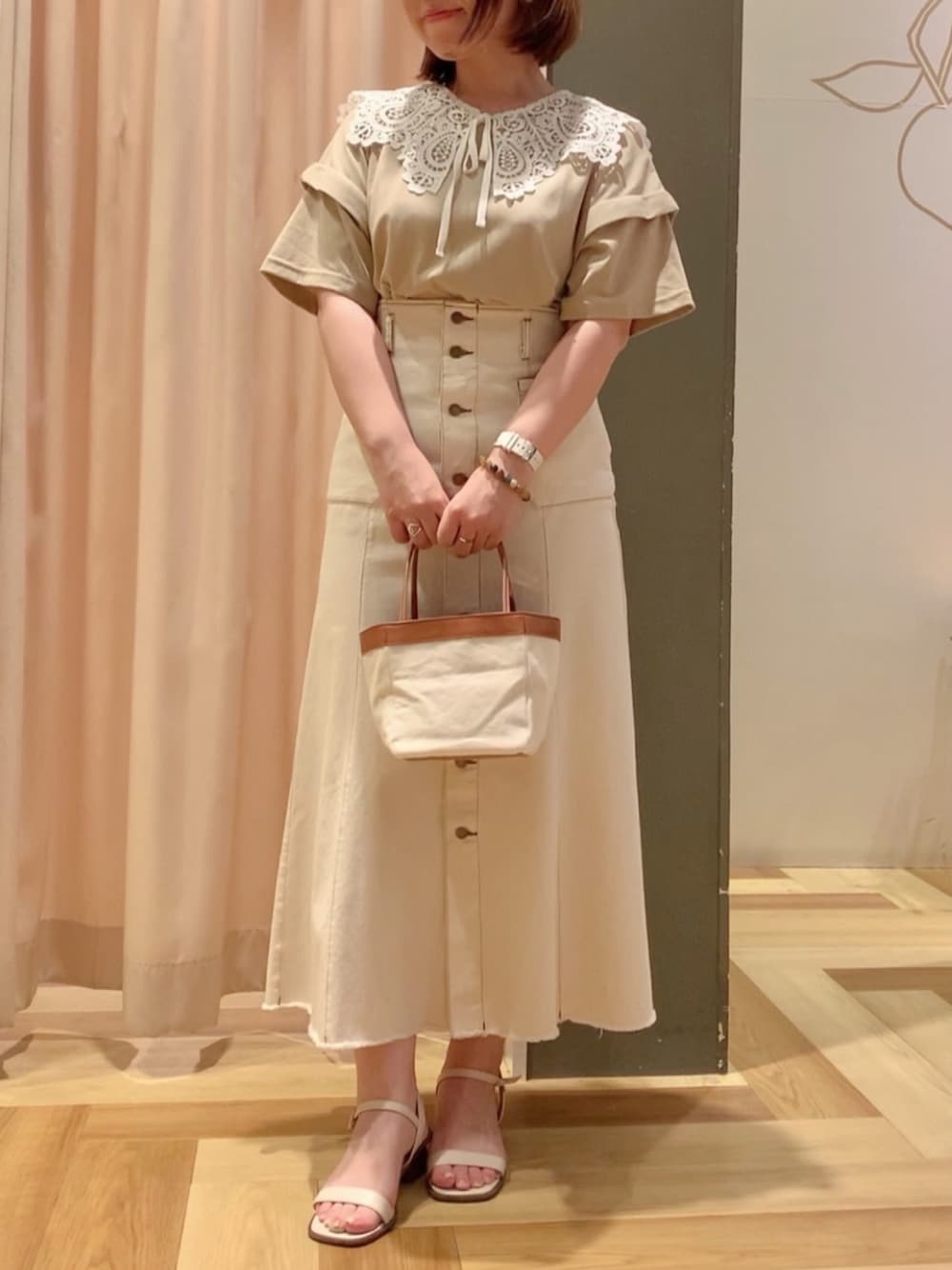 こんにちは✩︎⡱ 今回はベージュ×ホワイトで合わせてみました☺︎ トップスはレースの襟がセットです◎ あるだけで雰囲気がガラッと変わりますね!