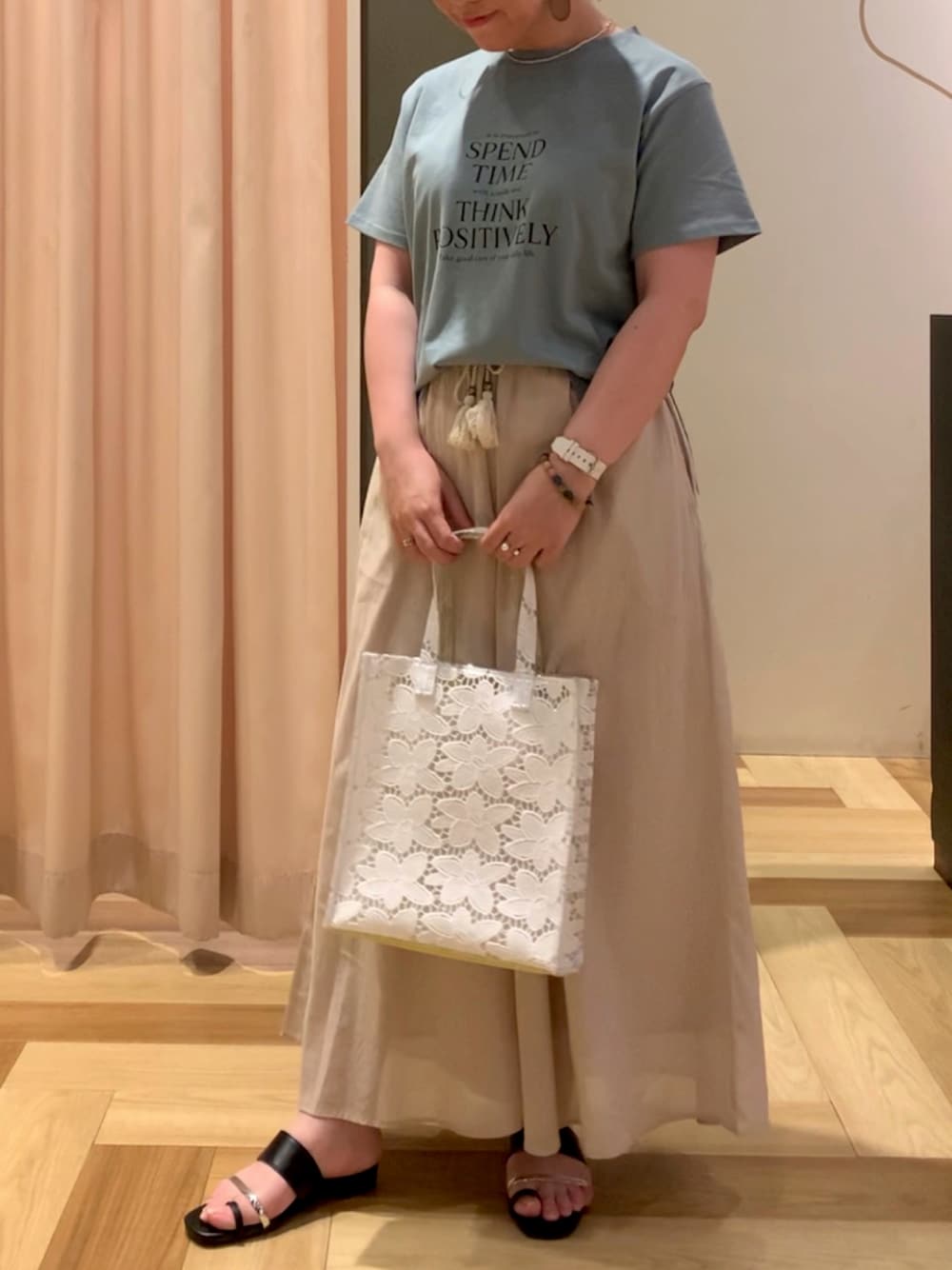 H I T O M I(Green Parks)のTシャツ/カットソー「多段キレイめロゴTシャツ*」を使ったコーディネート