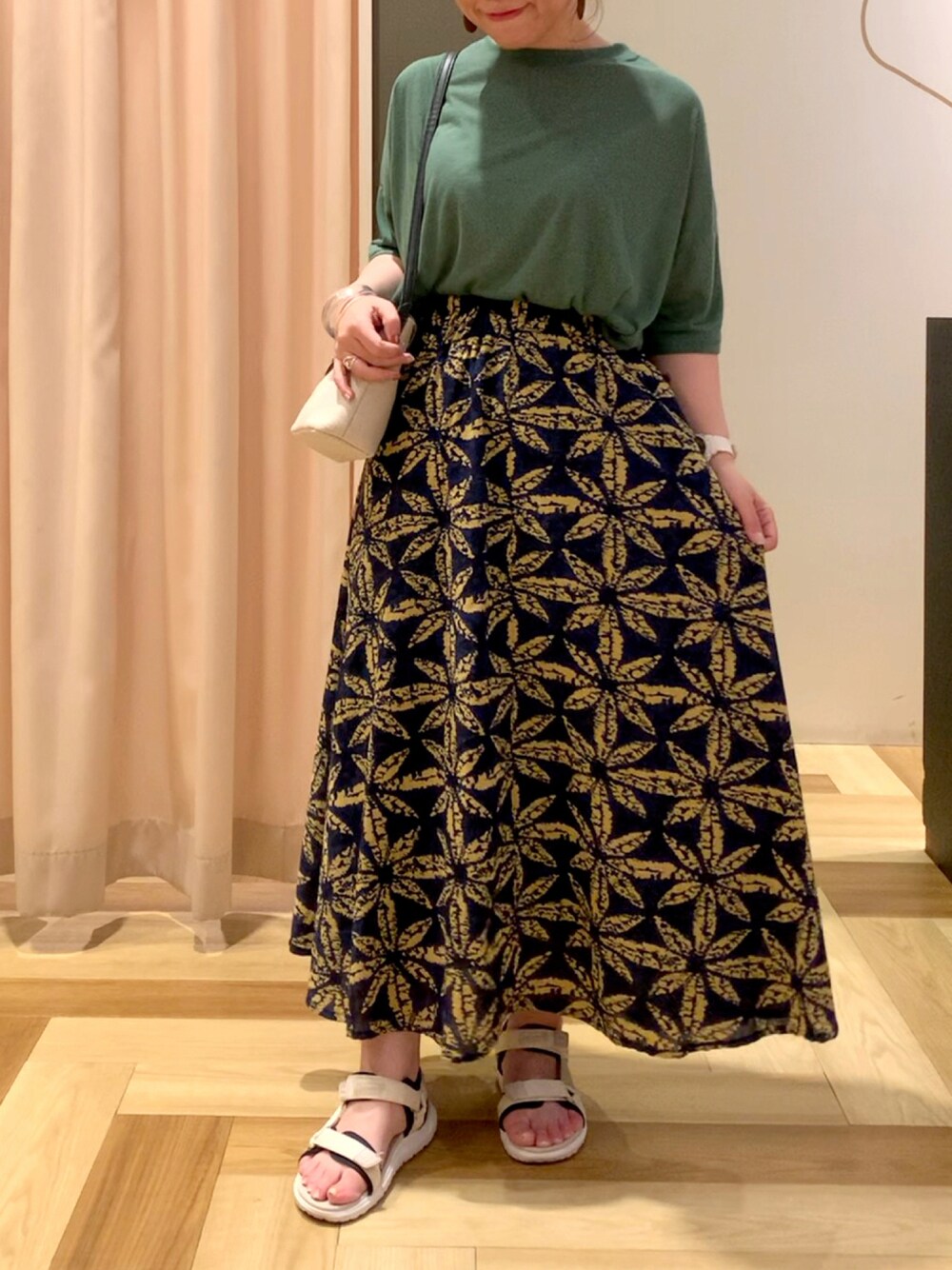お久しぶりです。 7月ですね! 少しお休みしていました。 また再開させていただきます☺︎ インドプリントスカートで合わせてみました! 3色展開です。 全部柄がお洒落で可愛いですよ!