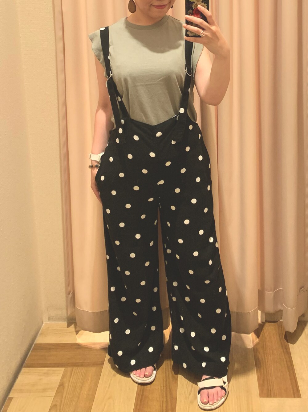 こんにちは☺︎ お久しぶりです! 本日はドット柄のサロペットを着てみました。 リネン素材で涼しくて、楽なのに可愛くきることができますよ◎
