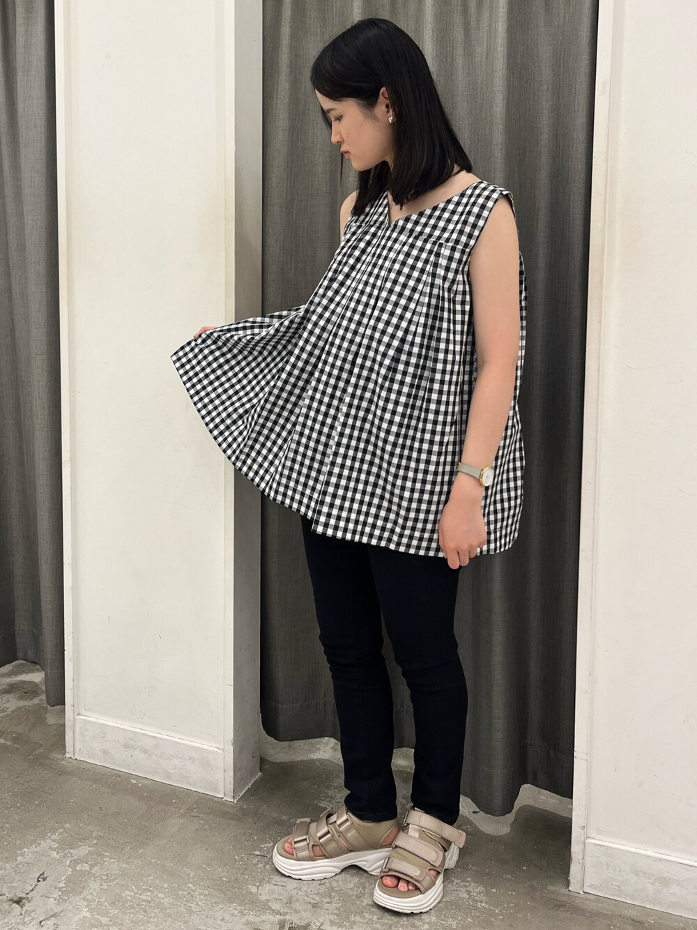 閲覧いただきありがとうございます🤍 📌トップス 【Vネックタックノースリーブブラウス】 HA33L0A05G0 Mサイズ すっきりとしたVネックが華奢見せしてくれるブラウスです👚 お尻まですっぽり隠れるので体型カバーにもなります🪄 たっぷりとタックが入っているので、上半身の厚みが気になる方にもおすすめです◎ 📌パンツ 【スキニーフィットデニム】 HC35L0F05Z0 Mサイズ ストレッチ性に優れたスキニータイプのパンツです🩳 動きやすいのでオンオフ問わず使っていただけます✨