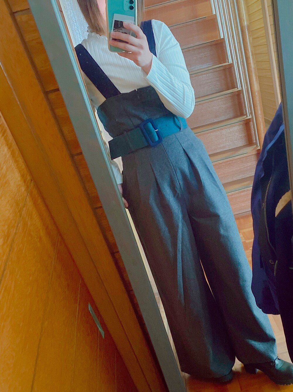 ウエストも締まって見えて、脚長効果のあるサロペット! 私は足が短いのでブーツを履かないと裾がギリギリです。悲しい←