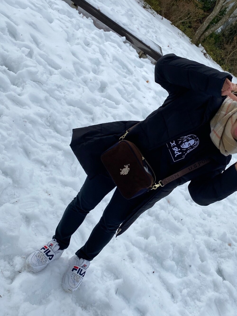 X-girlのパーカーが裏起毛でものすごく暖かい…! POLOのショルダーバッグは冬コーデにピッタリ!!