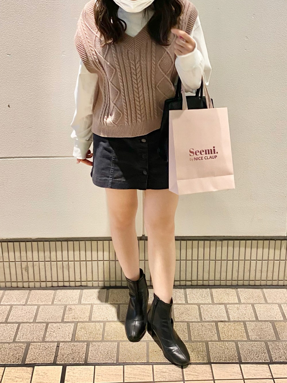 こんにちは☺︎ 今回もご覧いただきありがとうございます🌼 ガーリーコーデ...❤︎ ベストとミニスカのコンビ最強!! だんだん秋らしい服装ができるようになってきてとっても嬉しいです🙈🤍
