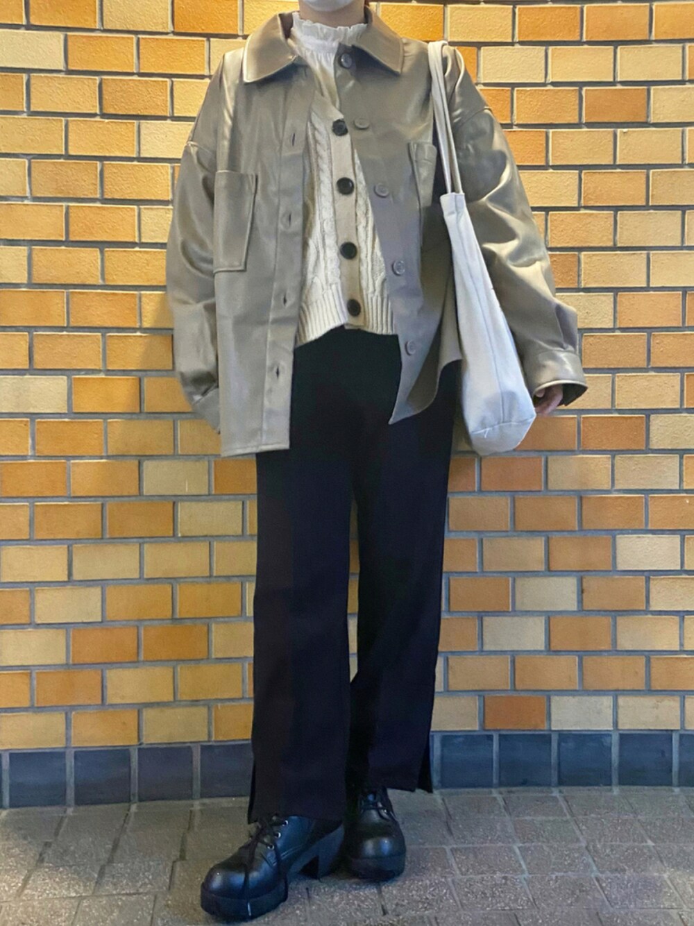 こんにちは☺︎ 今回もご覧いただきありがとうございます🌼 ...大人カジュアルコーデ... 中身はガーリーですが、レザーのジャケットを羽織ることで大人かっこよくしました 黒のレザーも好きですが茶色のレザーは色合いも落ち着いていてどんなコーディネートにも合わせやすいのでおすすめです♡