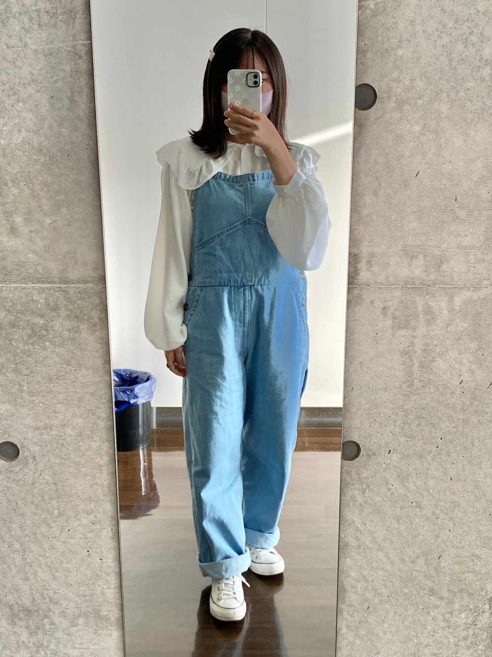 こんにちは☺︎ 今回も数多くのコーディネートの中からご覧いただきありがとうございます🌸 ----春の休日コーデ---- ガーリーなビック襟とデニムのオーバーオールを合わせて春らしさ満載のコーディネートです! 無地で統一させることでまとまり感を出しました