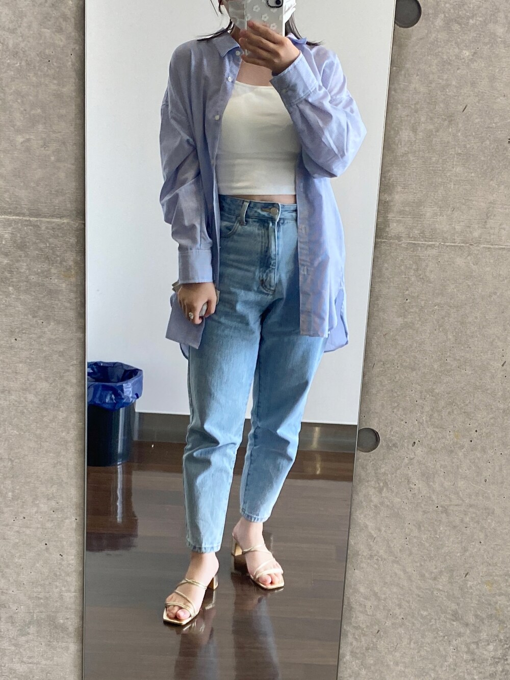 こんにちは☺︎ 今回も数多くの中のコーディネートの中からご覧いただきありがとうございます🌸 ----青デニムコーデ---- デニムを取り入れたコーディネート 青を基調として爽やかに組み合わせました! ゴールドのサンダムで少し大人っぽさが出せるのでおすすめです♡