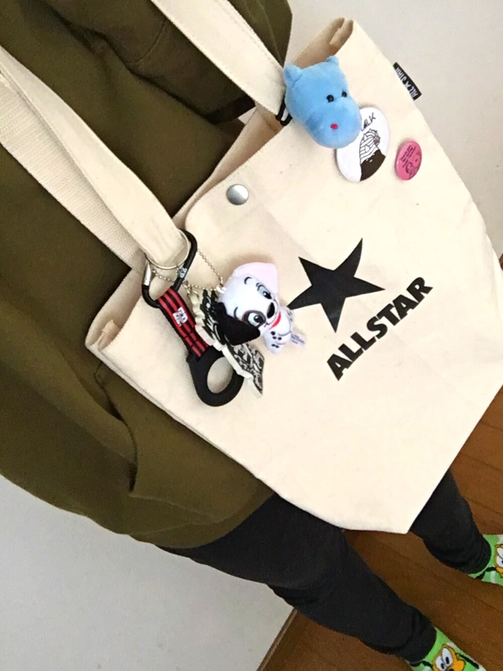 昨日ディズニーランドにいってきたので 今日は家でのんびりしようと思います。 ゲオで映画でも借りてこよ〜😎 トートバッグにはキーホルダーや缶バッジでちゃらちゃら飾り付けする派🤩