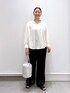 《158cm/サイズ&着用感》 着用は全てレギュラーサイズを着用しています。 ▶︎ブラウスMサイズ 襟元のデザインが可愛いブラウス。 顔まわりをすっきりした印象にしてくれます。 アクセサリーをつけても、付けなくても1枚で映え、リボンを結んだり1枚でアレンジを楽しめます。 人気のアイロンいらずシリーズなので、お洗濯あともストレスフリーで使えるブラウスです。 ▶︎ボトムFREEサイズ 上品で大ぶりのレースデザインが、大人の透け感を演出してくれるパンツ。 ワイドパンツが苦手な方でもチャレンジしやすい、広がりすぎないワイドシルエットがレースと相性良くパンツなのに女性らしい品のあるスタイルを楽しめる1枚です。 ウエストより腰回りが大きい私の下半身には、履く時少し苦労が必要でしたが、履けるとウエストはゴムなので窮屈感や動きにくさはなかったです。 履く際に腰回りでひっかかりはあります。 同シリーズのトップスとセットアップスタイルを楽しんでいただけます。 ▼▽▼▽▼▽▼▽▼▽▼▽ 見て頂き、ありがとうございます! 使用アイテムは下記に記載がございます。 ⚪︎いいね ⚪︎フォロー 嬉しいです、ありがとうございます。 ▲△▲△▲△▲△▲△▲△