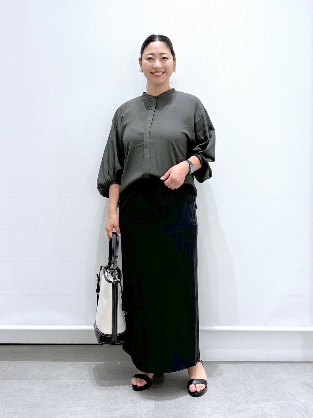 《158cm/サイズ&着用感》 着用は全てレギュラーサイズの物着用しています。 ▶︎トップスMサイズ 袖口のボリュームデザインがシルエット綺麗に、二の腕をしっかりカバーしつつ女性らしい揺れ感を演出します。 サラサラした通気性の良い生地で、これからの汗ばむ季節も軽い着心地で着れます。 袖周り、身幅がゆったり目のデザインなので身体のシルエットを拾わずカットソーの用に気軽に着回せるアイテムです。 158cmでおしりかかるくらいの丈感で、インスタイルもアウトスタイルも1枚で着回し出来ます。 ▶︎スカートMサイズ 洗濯してもシワになりにくく、ストレッチが入った生地がとにかく動きやすくてON/OFFどちらでも着回しができるナロースカート。 身体のラインを拾わないよう、包み込むようなナローデザインが綺麗なシルエットで着て頂けます。 ウエストがゴムなのにリラックスしながらも上品に着れる1枚です。 ▼▽▼▽▼▽▼▽▼▽▼▽ 見て頂き、ありがとうございます! 使用アイテムは下記に記載がございます。 ⚪︎いいね ⚪︎フォロー 嬉しいです、ありがとうございます。 ▲△▲△▲△▲△▲△▲△
