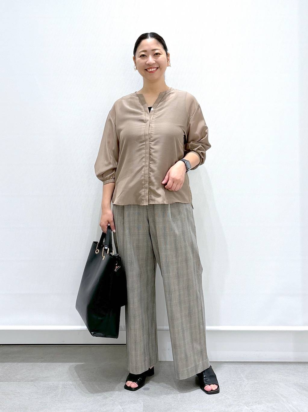《158cm/サイズ&着用感》 着用は全てレギュラーサイズの物着用しています。 ▶︎シャツMサイズ エルーラ1番人気シャツシリーズのアイロンイラズブラウス! 流行り廃りのないスキッパーデザインが顔まわりをすっきり見せてくれます。 着た後の面倒なアイロン作業が必要ない事でロングセラーのシリーズからシア感のある大人女性が着やすいブラウスが出来ました! シャツに比べて胸囲が約3cm小さいので、同じMサイズでもゆとり感が違います! シャツが大きく感じた方はブラウスがオススメ! 大胸さんは1サイズあげてもいいサイズ感です。 便利な機能はそのままに、この時期に嬉しい柔らかな透け感と軽い着心地でスタイリングに使いやすい1枚です。 ▶︎パンツMサイズ 柔らかく、軽い履き心地と適度に厚みのある生地が、身体のラインを拾わずリラックスして履いていただける1枚です。 ウエストゴムで少し太めのフロントゴム幅が、お腹周りをすっきりとした印象にしてくれます。 生地には少しストレッチが入っており、つっぱり感なく動きやすいワイドパンツです。 シンプルでマットなカラーがON、OFFコーデで活用して頂けます! ▼▽▼▽▼▽▼▽▼▽▼▽ 見て頂き、ありがとうございます! 使用アイテムは下記に記載がございます。 ⚪︎いいね ⚪︎フォロー 嬉しいです、ありがとうございます。 ▲△▲△▲△▲△▲△▲△