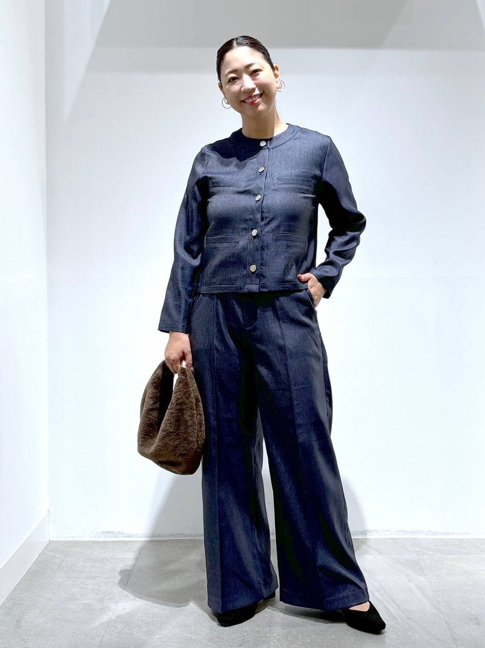 はつな(Elura 阪急西宮ガーデンズ)のデニムパンツ「<スタイリスト福田麻琴さんコラボ>大人デニムワイドパンツ/ 142038」を使ったコーディネート