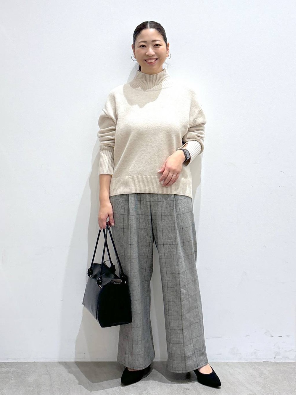 《158cm/サイズ&着用感》 着用は全てレギュラーサイズを着用しています。 ▶︎カシミヤニットLサイズ カシミヤ混の軽く、着るだけで暖かいニット。 サイズ感は全体的にゆったりとした作り、ハイネック部分も詰まった着心地でなく少しゆとりのある作りなのでリラックスして着ていただけます。 背面のデザインがバックスタイルも綺麗に見せてくれるので、ゆったりしたサイズ感でも綺麗な印象です。 Lサイズは全体的に大きく感じました。 特に袖丈が長いので158cm62kgくらいの方はMサイズで充分なサイズ感です。 ▶︎パンツMサイズ 裏起毛のあったかパンツ。 分厚すぎない適度な厚みが軽く、履きやすい1枚。 センタープレスデザインがワイドパンツなのき綺麗目に見せてくれるのでカジュアルでも綺麗めでも着回せます。 サイズは少しゆったりめです。 ▼▽▼▽▼▽▼▽▼▽▼▽ 見て頂き、ありがとうございます! 使用アイテムは下記に記載がございます。 いいね フォロー 嬉しいです、ありがとうございます。 ▲△▲△▲△▲△▲△▲△